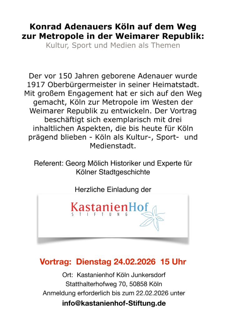 Vortrag von Georg Mölich über Konrad Adenauers Köln auf dem Weg zur Metropole in der Weimarer Republik